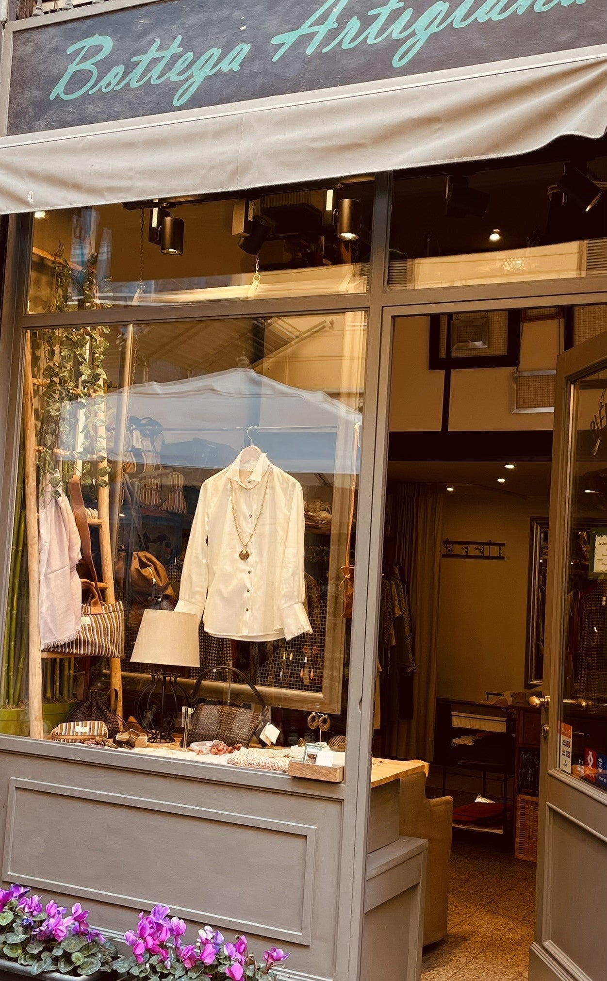Nella sua bottega propone bijoux, accessori e capi di abbigliamento; li espone con grande cura ed eleganza mettendo sempre in risalto qualità, tecniche di lavorazione e materiali, valorizzando così l'operato artigiano.